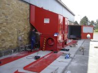 Montiert werden neben dem Verdichter die auftragsbeszogenen Zubehörteile wie Trichter, Zentrierschienen und ggf. weitere Maschinenkomponenten wie Hub-Kipporrichtungen oder Pappenzerreißer.