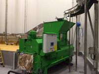 Een horizontaal geplaatste persplaat die elektrohydraulisch aangedreven wordt, pers het materiaal samen. Zo is de doorlopende toevoer van de machine gewaarborgd en is de integratie in het productieproces gegarandeerd.